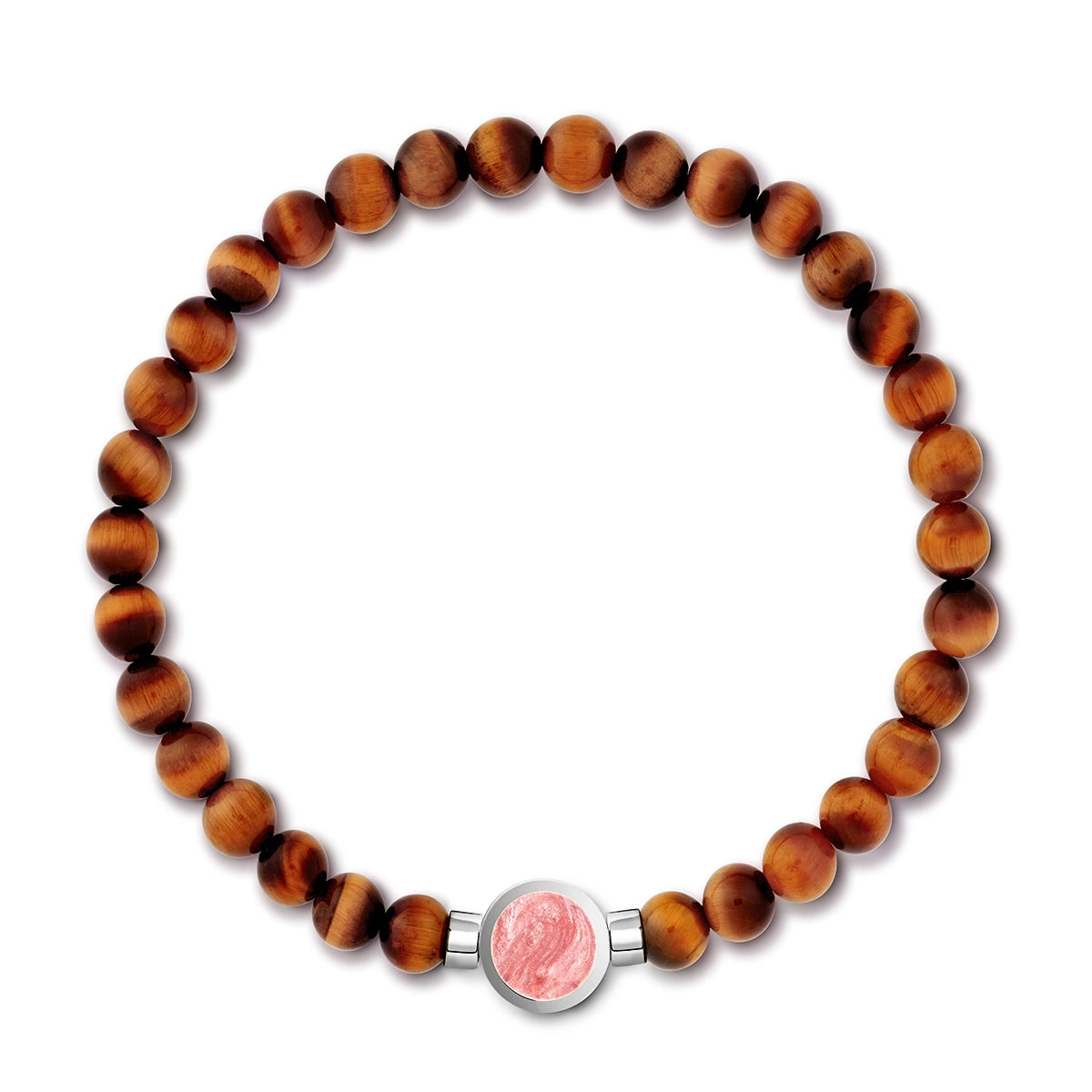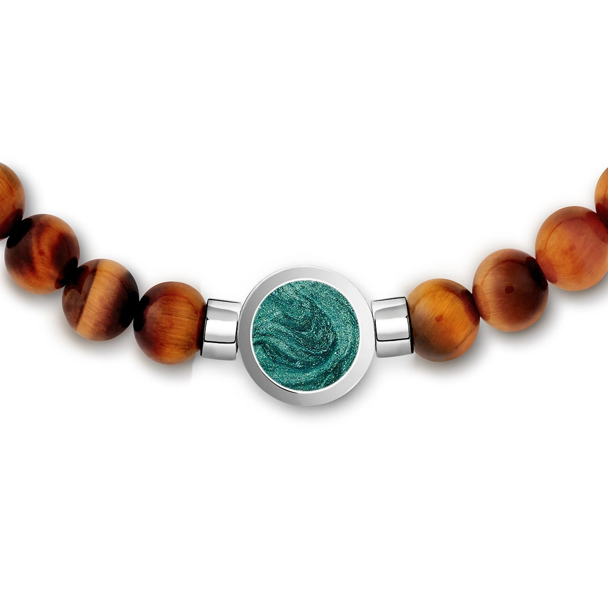 Men's Small Beaded Tiger's Eye Ashes Resin Bracelet - Silver