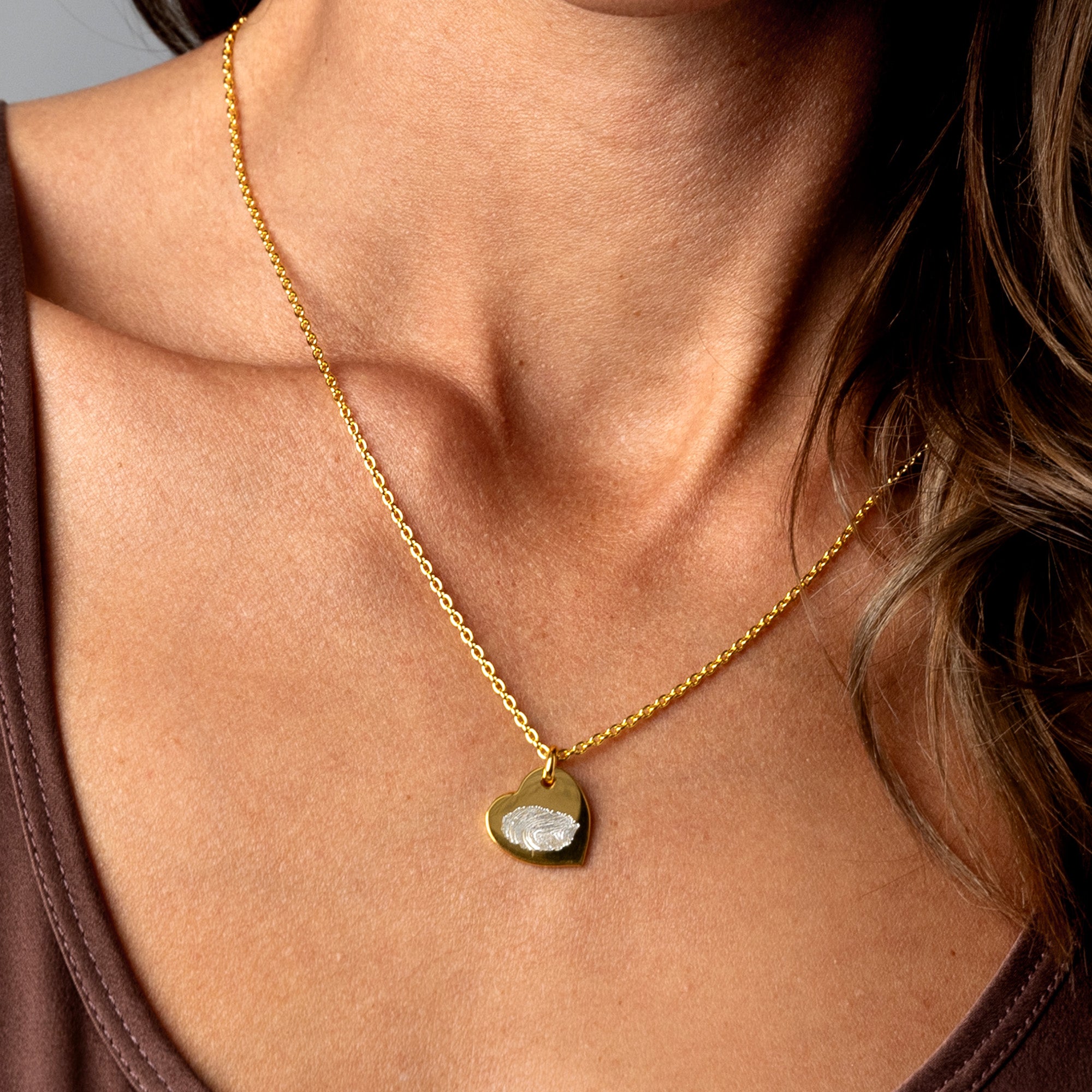 Fingerprint Drop Heart Personalised Necklace - Gold