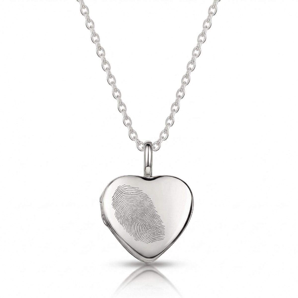 Capture the unique touch of someone you love with this stunning heart silver fingerprint locket necklace. Each locket is engraved from your fingerprint, preserving every swirl and line with crisp, lifelike detail.