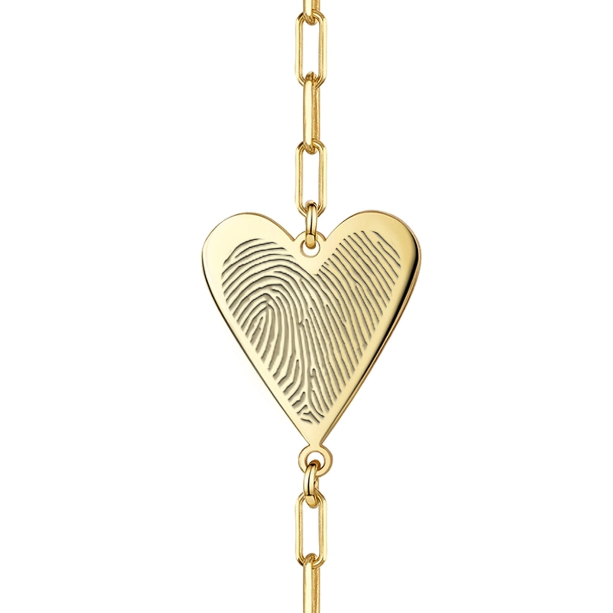 Capture the unique touch of someone you love with this paper-clip chain heart bracelet designed for everyday wear. Each pendant is engraved from a real fingerprint, preserving every swirl and line with crisp, lifelike detail.