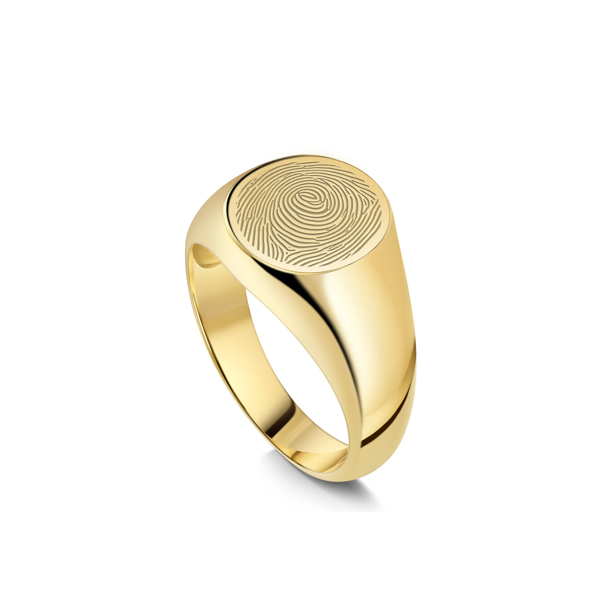 Capture the unique touch of someone you love with this round fingerprint signet ring. Each piece is engraved from your real fingerprint, preserving every line and swirl with crisp, lifelike detail.