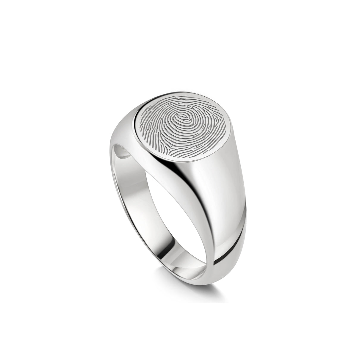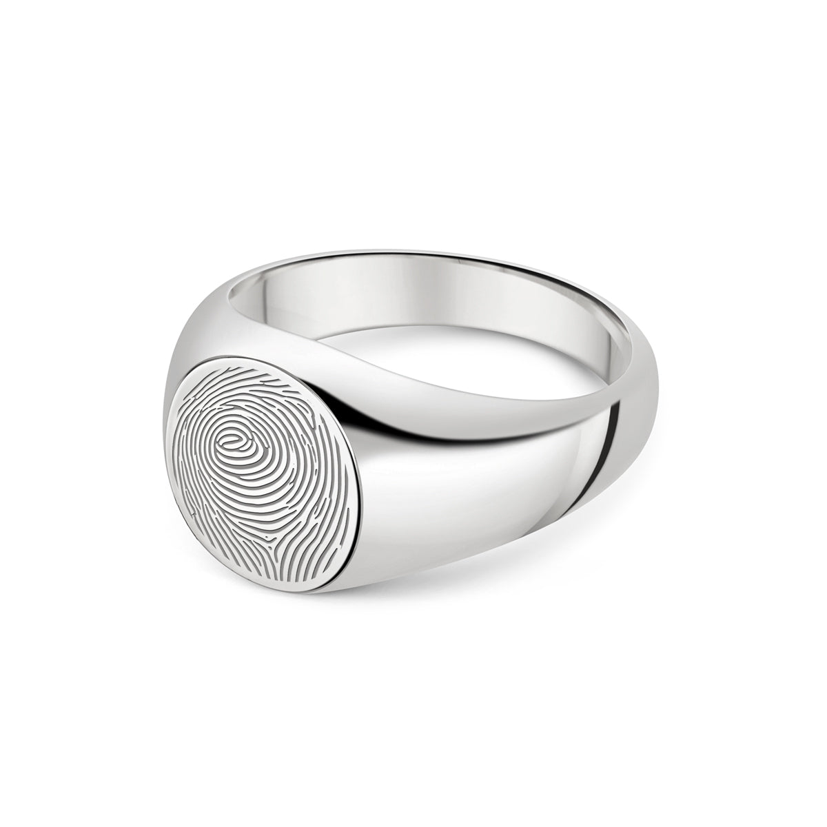 Capture the unique touch of someone you love with this round fingerprint signet ring. Each piece is engraved from your real fingerprint, preserving every line and swirl with crisp, lifelike detail.