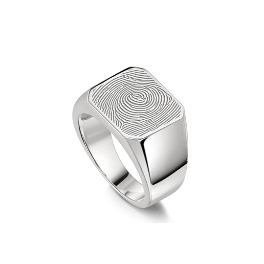 Men's Octagonal Fingerprint Signet Ring - Silver