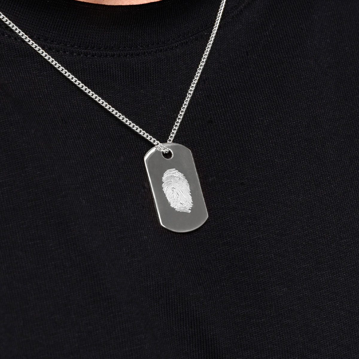 Capture the unique touch of someone you love in a timeless dog-tag necklace designed for everyday wear. Each pendant is engraved with your fingerprint, preserving every swirl and line with crisp, lifelike detail.