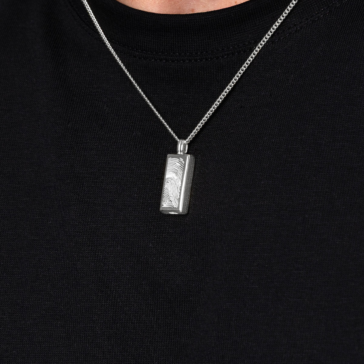Capture the unique touch of someone you love in an ingot urn necklace designed for everyday wear. Each urn is engraved with your fingerprint on the front, preserving every swirl and line with crisp, lifelike detail.