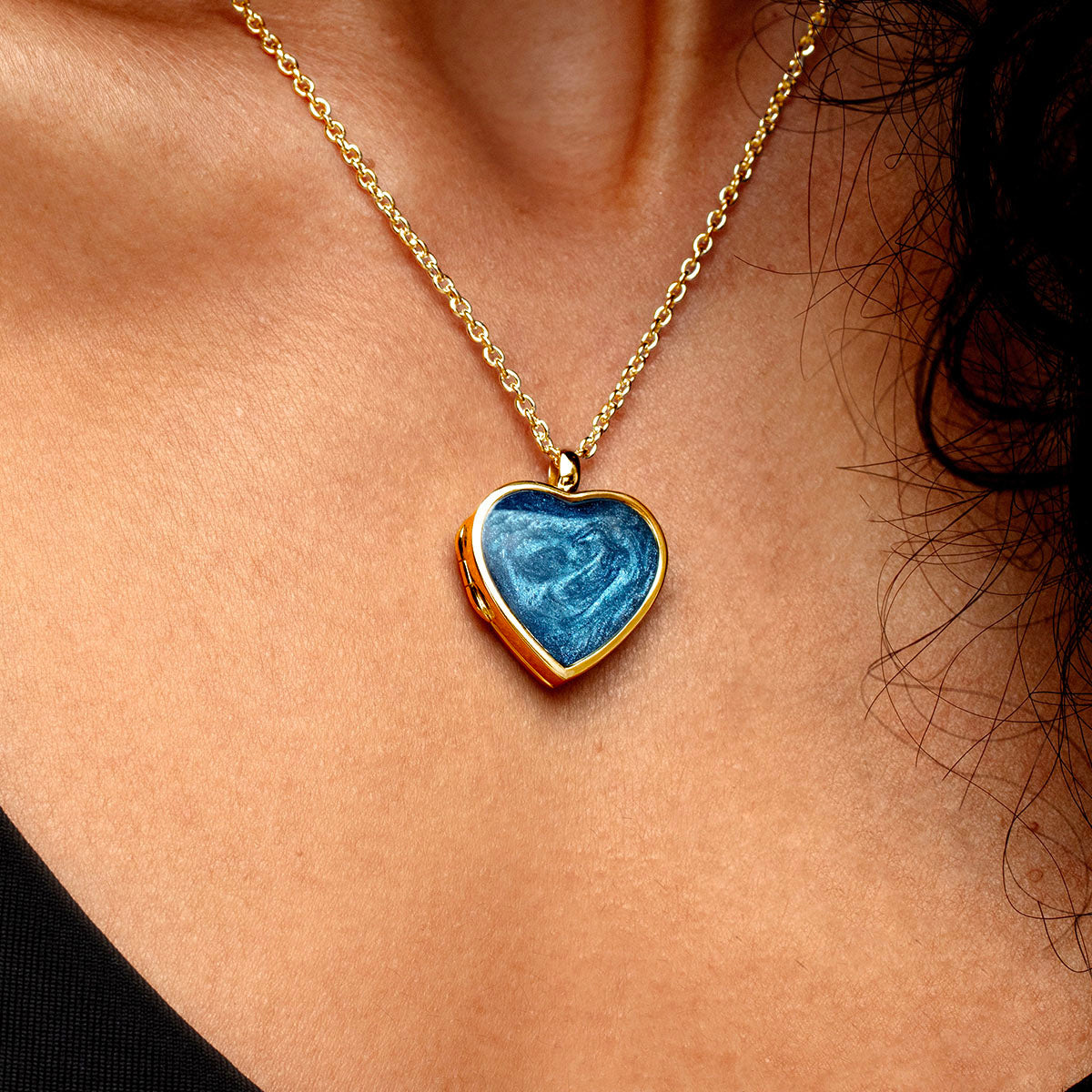 What makes this locket truly unique is the resin-inset front that contains the cremation ashes of your loved one. The ashes are carefully and securely preserved within a specialised resin infused with coloured pigment resulting in our signature celestial look.