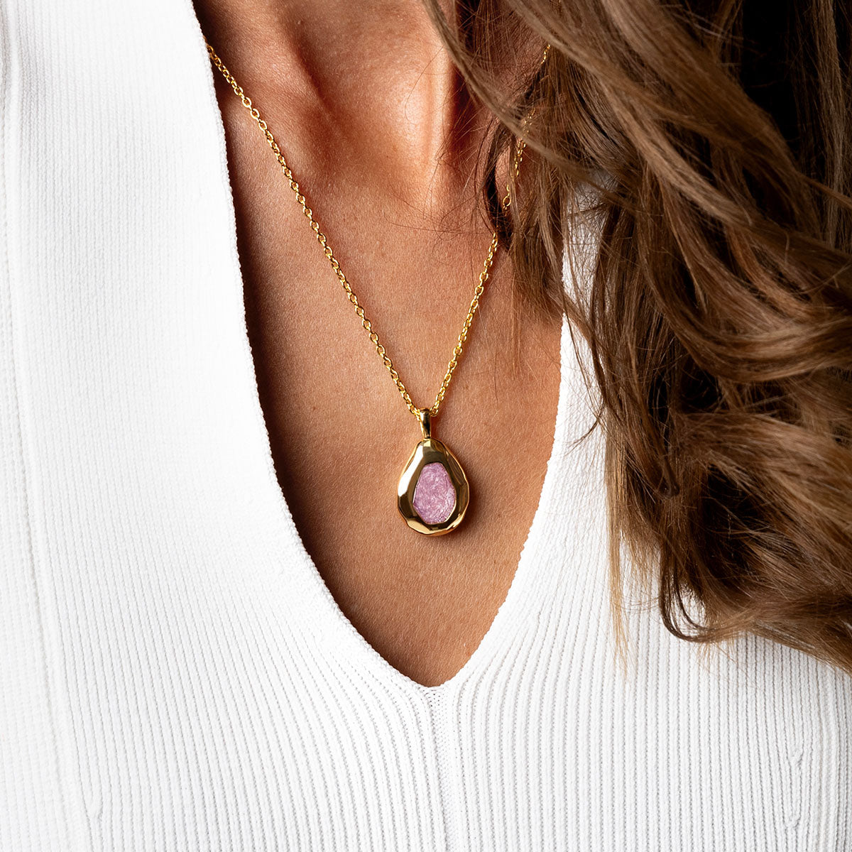 Large Organic Teardrop Ashes Resin Necklace - Gold