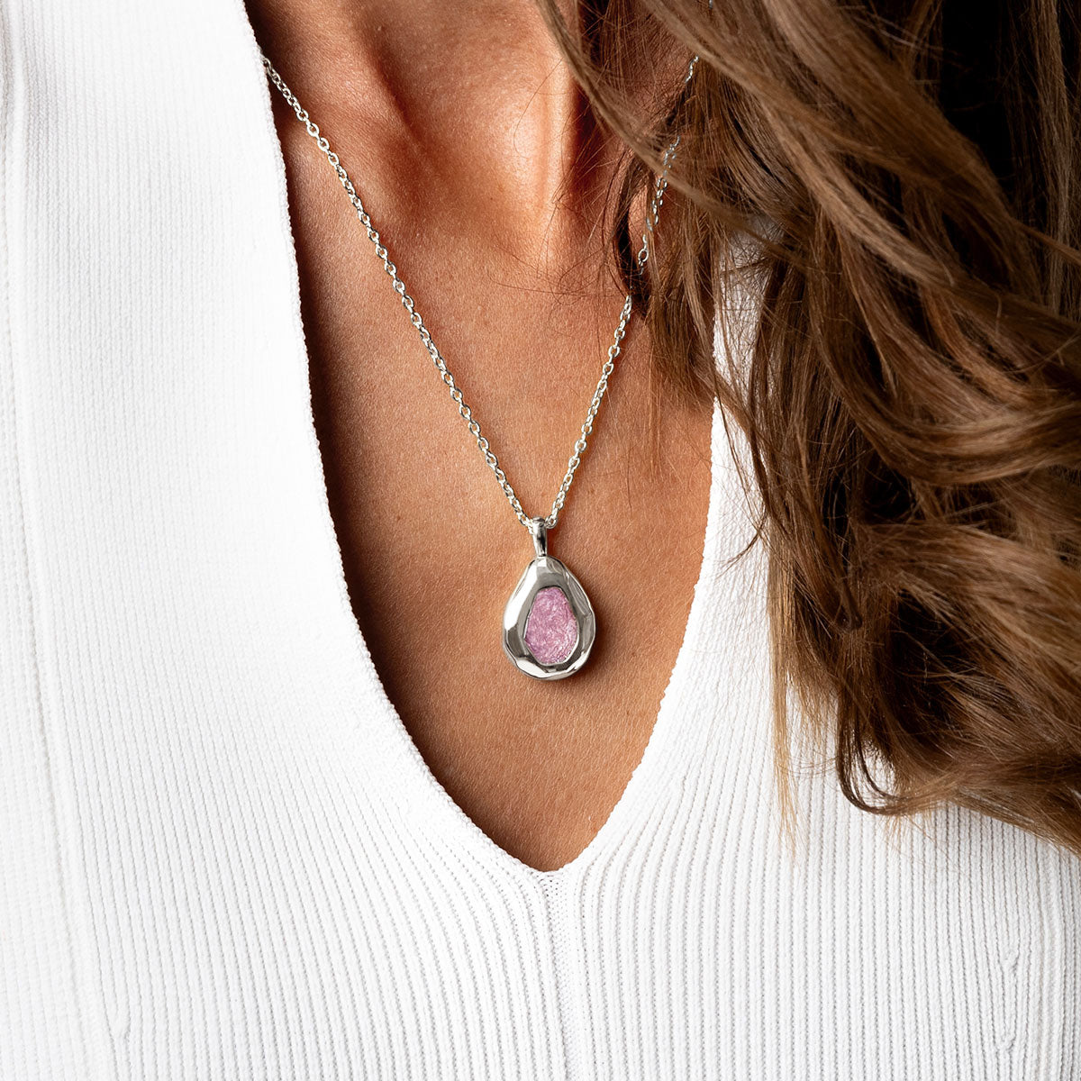 Crafted in 925 sterling silver, this memorial necklace features a larger teardrop-shaped pendant with a softened, organic form. The flowing contours and irregular edges give the piece a natural, tactile quality that sits beautifully against the skin.