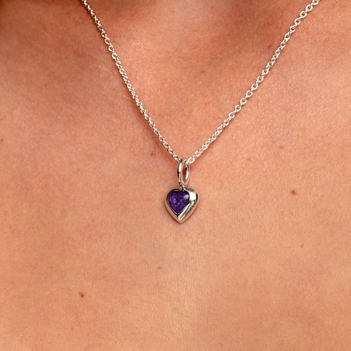Crafted from 925 sterling silver plated this delicate piece features a heart shaped pendant with a signature loop bail.