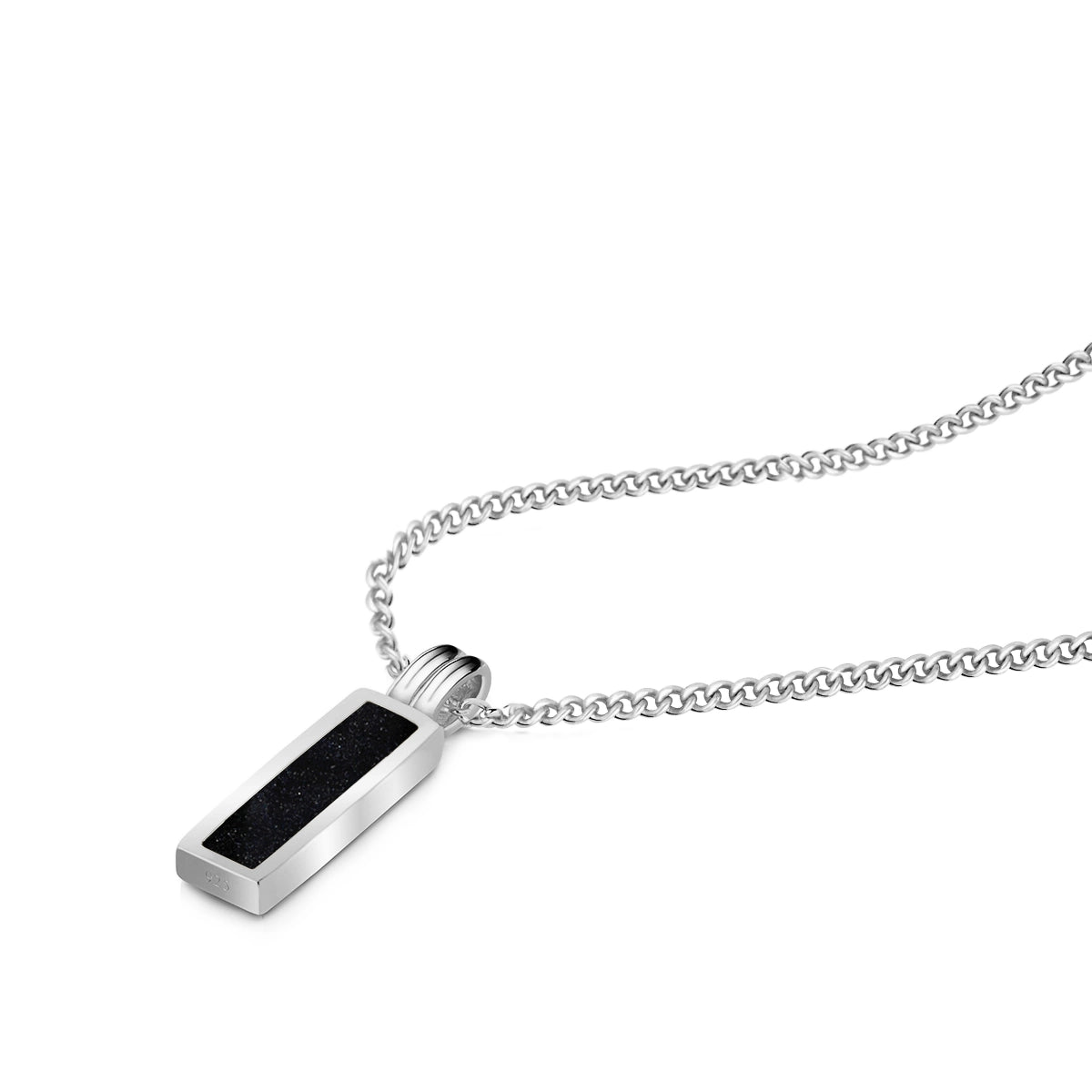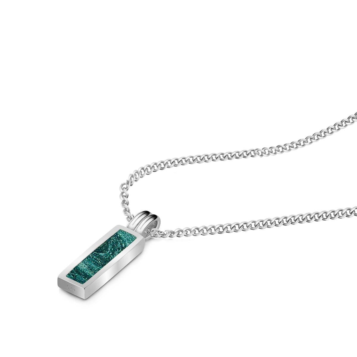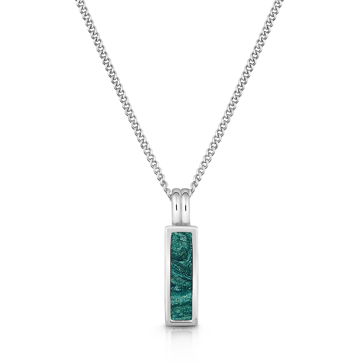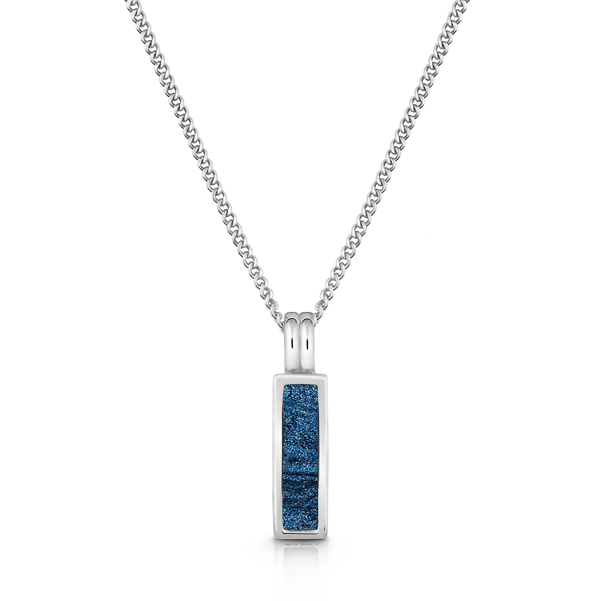 At its centre, the pendant holds a rectangle of custom resin, tinted with coloured pigment and blended with a small portion of your loved one’s ashes. Each piece is uniquely handcrafted, creating a celestial effect that is entirely one-of-a-kind.