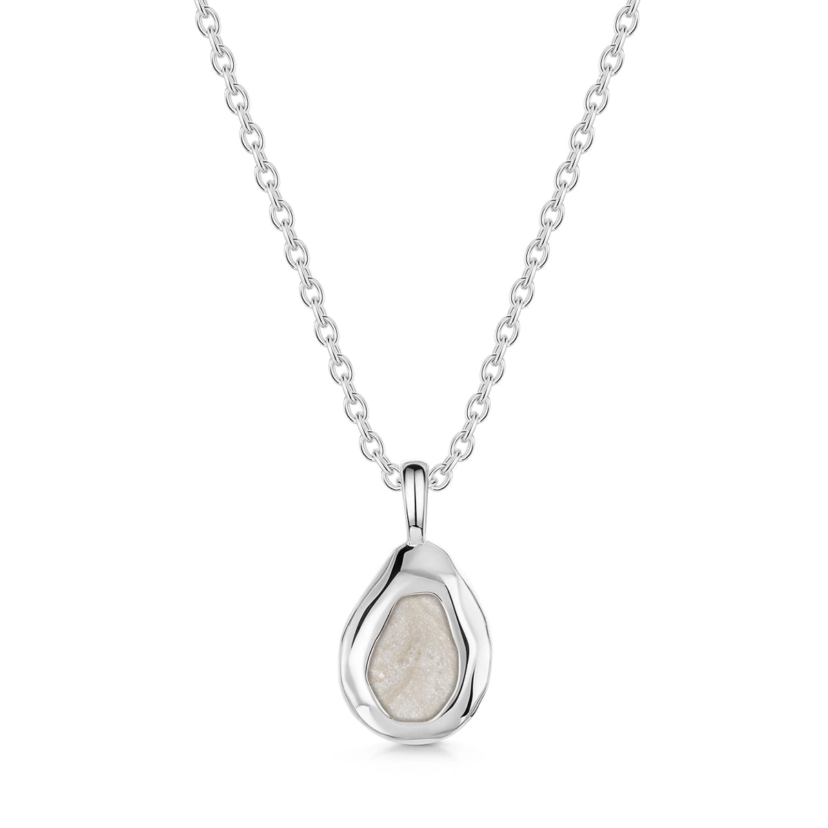 Crafted from 925 sterling silver, this pendant features a soft, teardrop silhouette with subtle curves and a fluid form that feels organic and natural.