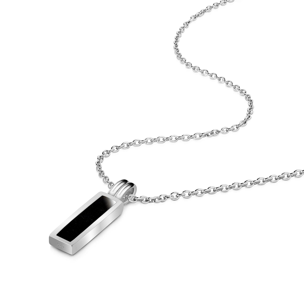 Crafted from 925 sterling silver, this vertical tag necklace offers a modern and minimalist profile.