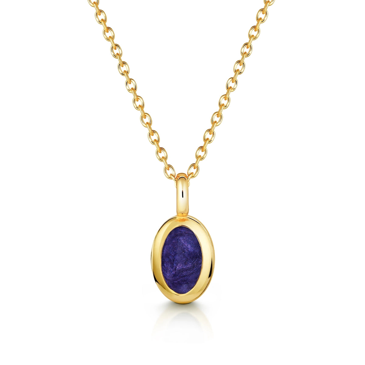 A small but striking tribute, this ashes necklace features a smooth oval setting filled with a resin that is custom-blended with ashes - creating a truly personal and one-of-a-kind keepsake.
