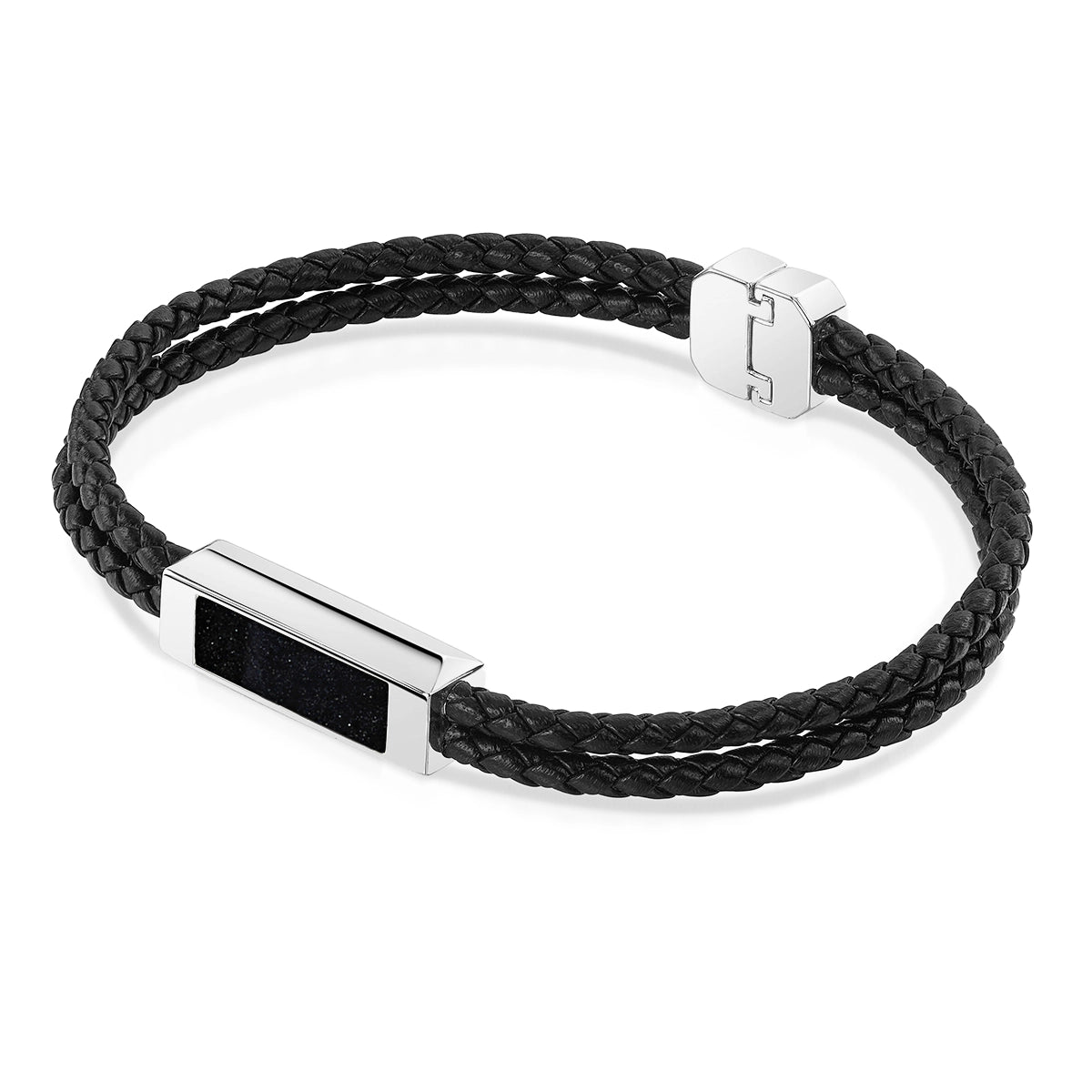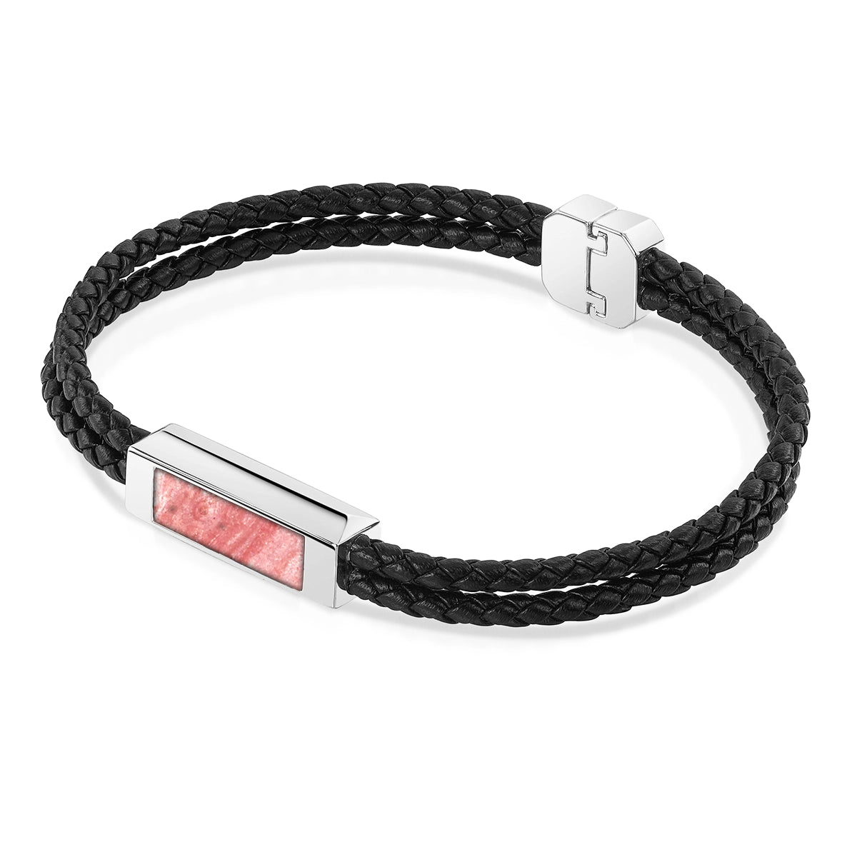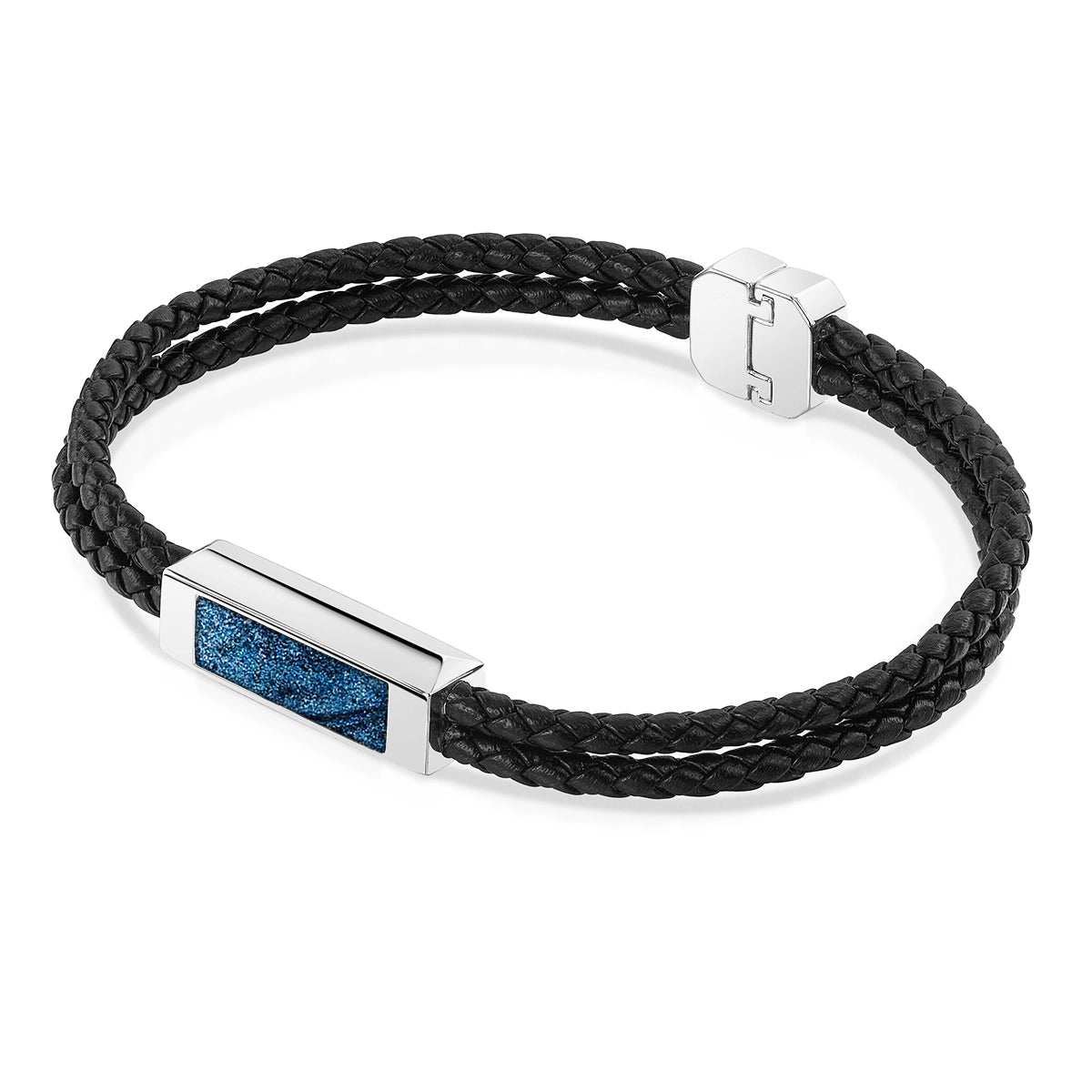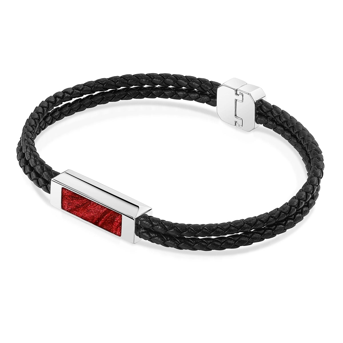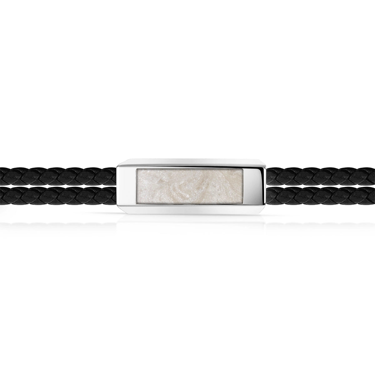 This modern memorial bracelet is crafted from solid sterling silver, set on a double braided leather cord with a strong magnetic clasp for a secure and comfortable fit.