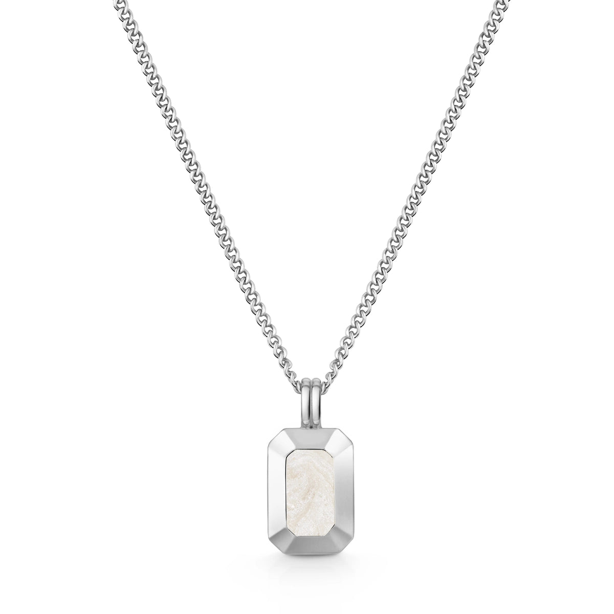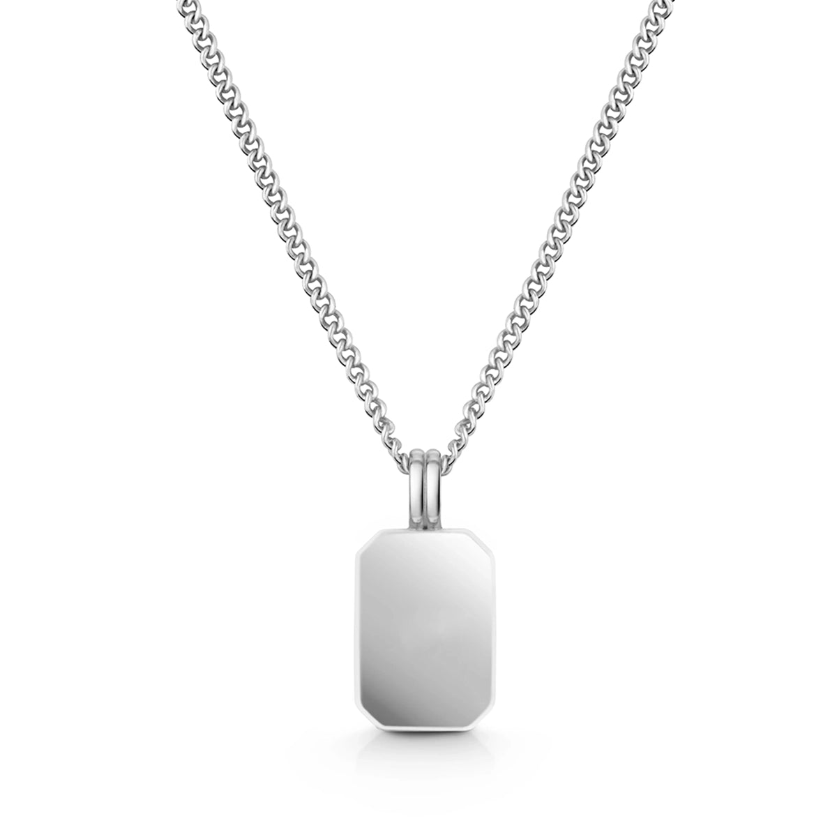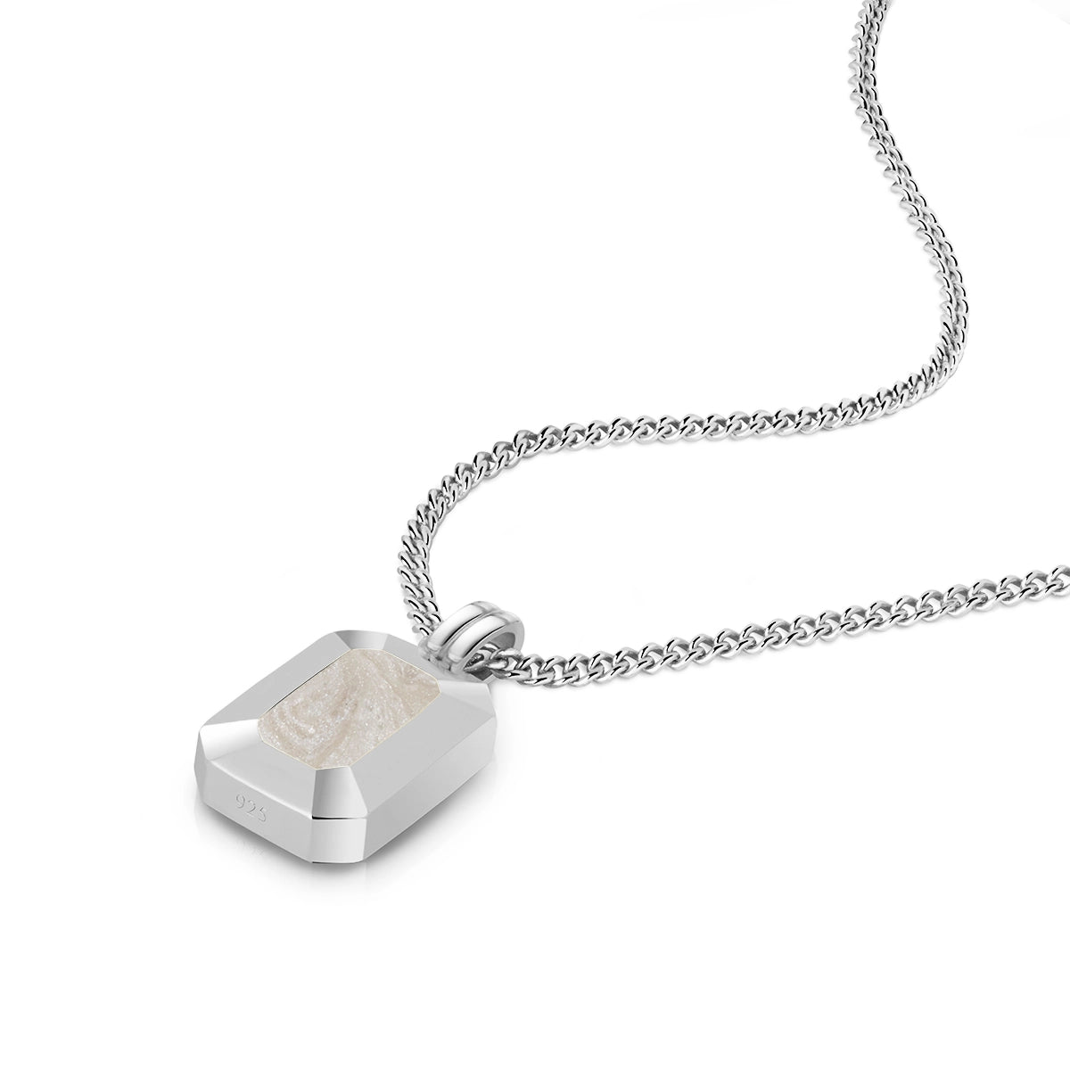 Crafted from 925 sterling silver, this men’s memorial necklace features a bold ingot-shaped pendant with clean, geometric lines.