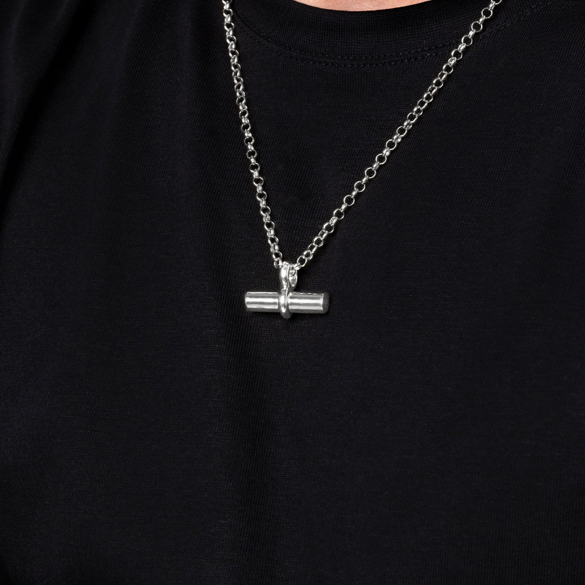 This Chunky T Bar Urn Necklace offers a stylish way to keep a loved one close. Crafted in 925 sterling silver, the solid horizontal bar design conceals a discreet inner chamber that holds a small portion of cremation ashes, secured by a threaded screw mechanism on one end.