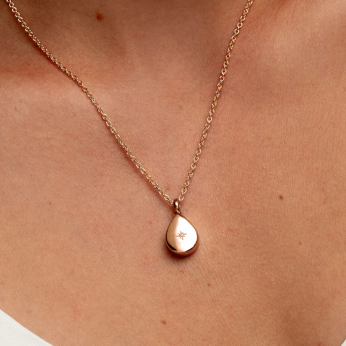 Diamantbesetzte Teardrop Urne Asche Halskette - Rose Gold