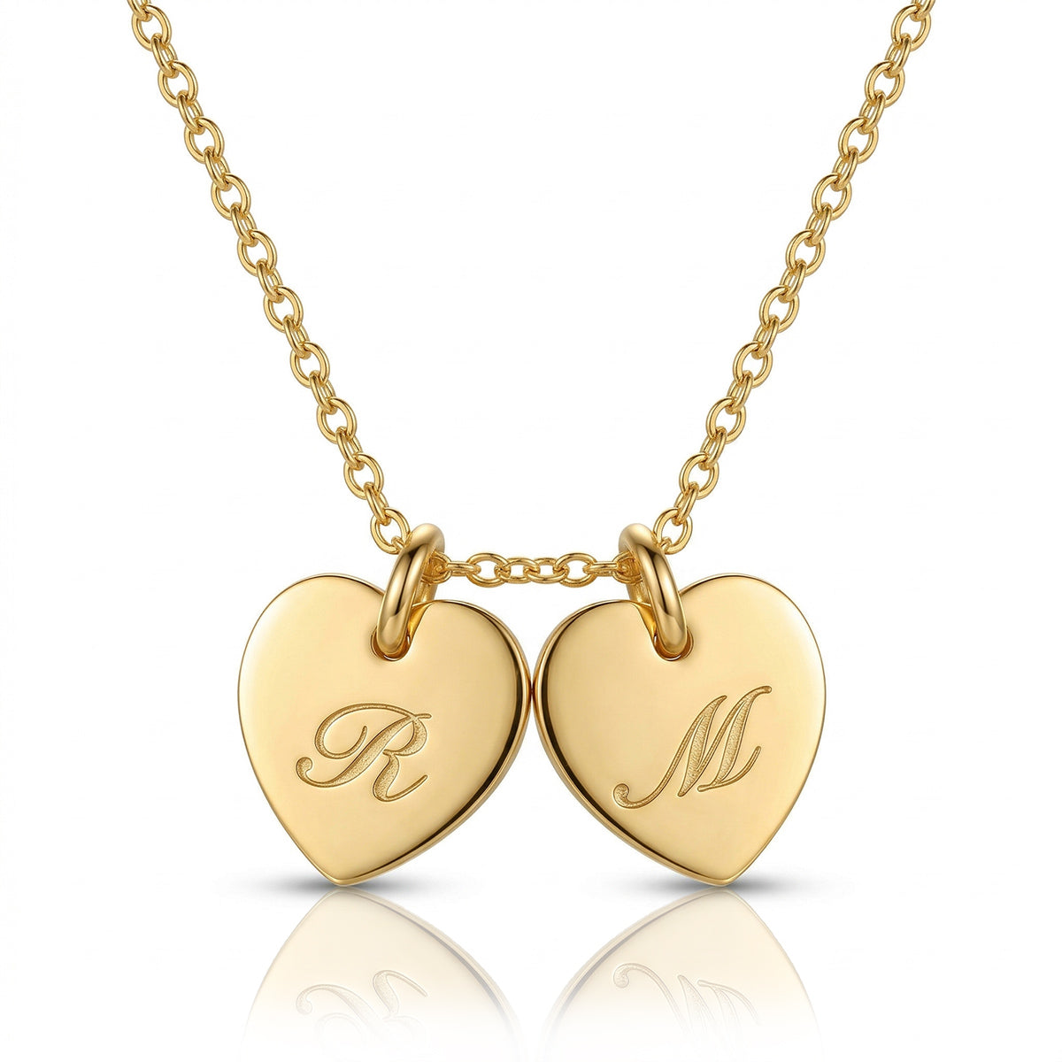 Each heart can be engraved with an initial or meaningful number, allowing you to represent two special people, or moments. The simple twin-heart design keeps the piece timeless and personal, making it perfect for everyday wear.