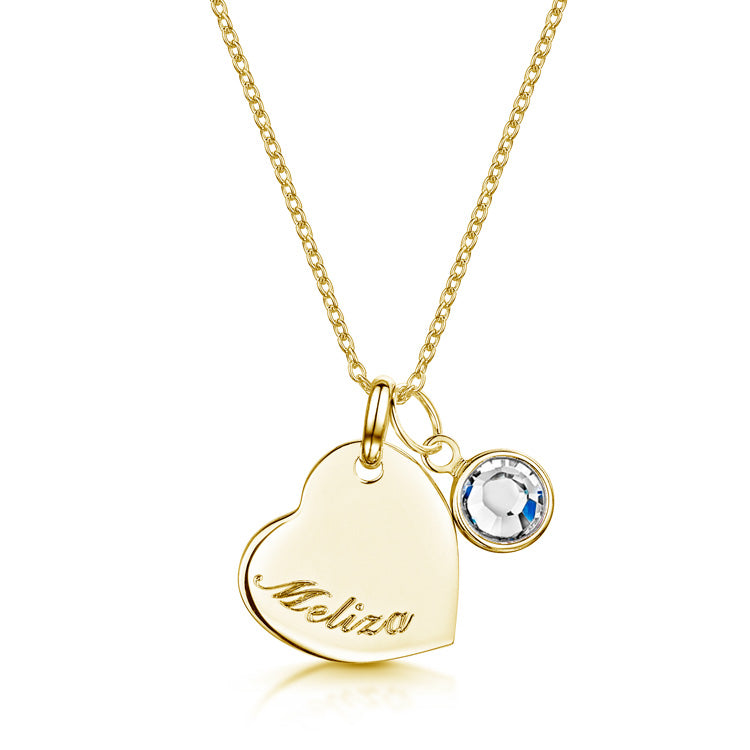Crafted from 18k gold plated 925 sterling silver, the polished heart can be engraved with a name, while the Swarovski® crystal birthstone adds a subtle pop of colour representing a special month or person. The two charms sit neatly together on a trace silver chain, creating a balanced pairing