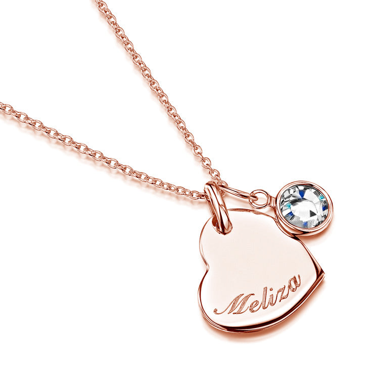 Crafted from 18k rose gold plated 925 sterling silver, the polished heart can be engraved with a name, while the Swarovski® crystal birthstone adds a subtle pop of colour representing a special month or person. The two charms sit neatly together on a trace silver chain, creating a balanced pairing
