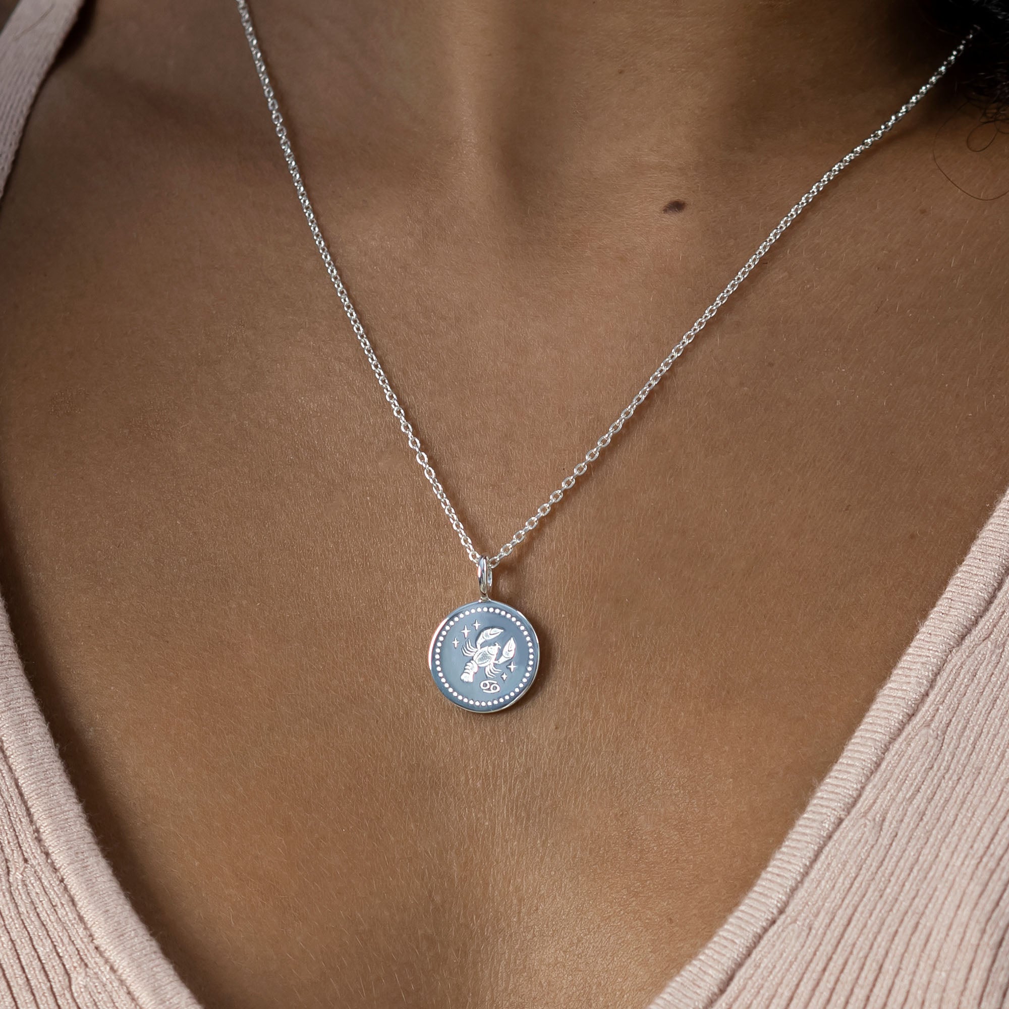 Celebrate your star sign with this timeless zodiac pendant necklace. The circular charm features a finely detailed zodiac motif framed by a subtle beaded edge, creating a design that feels both classic and personal.