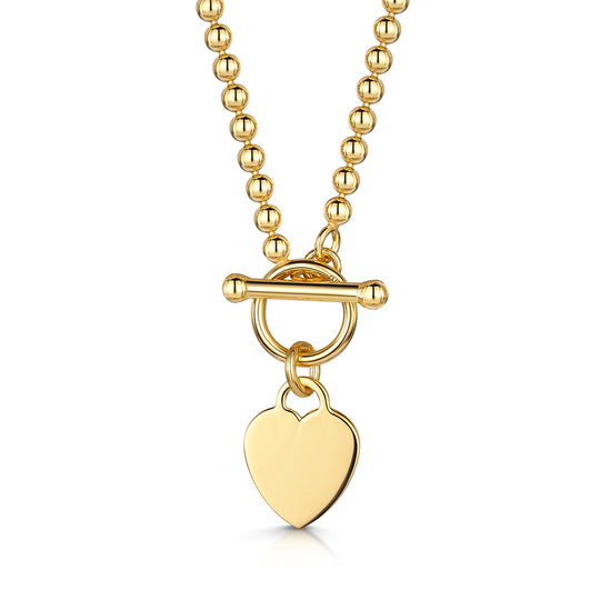 Personalised Bead Chain T-Bar Heart Necklace – Gold