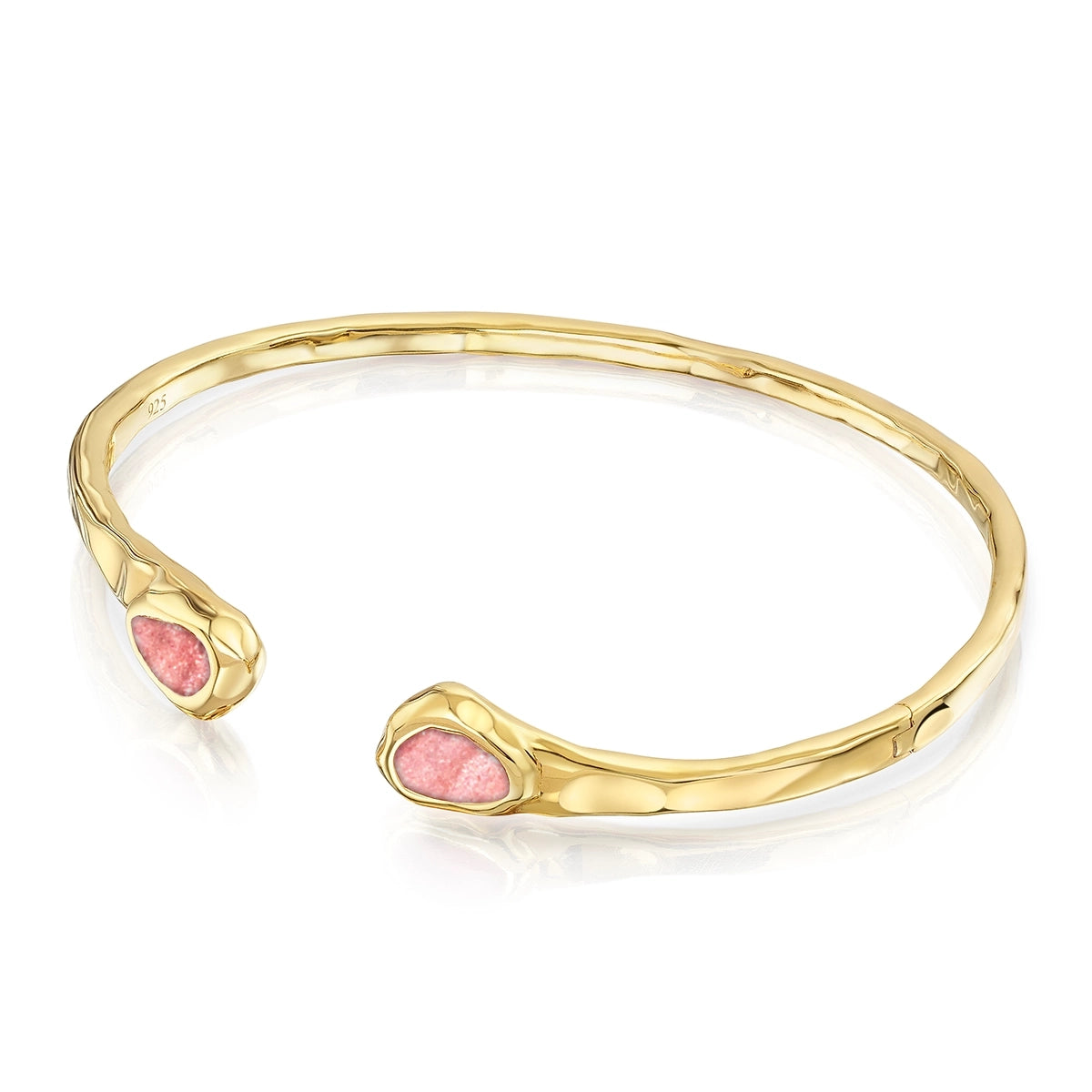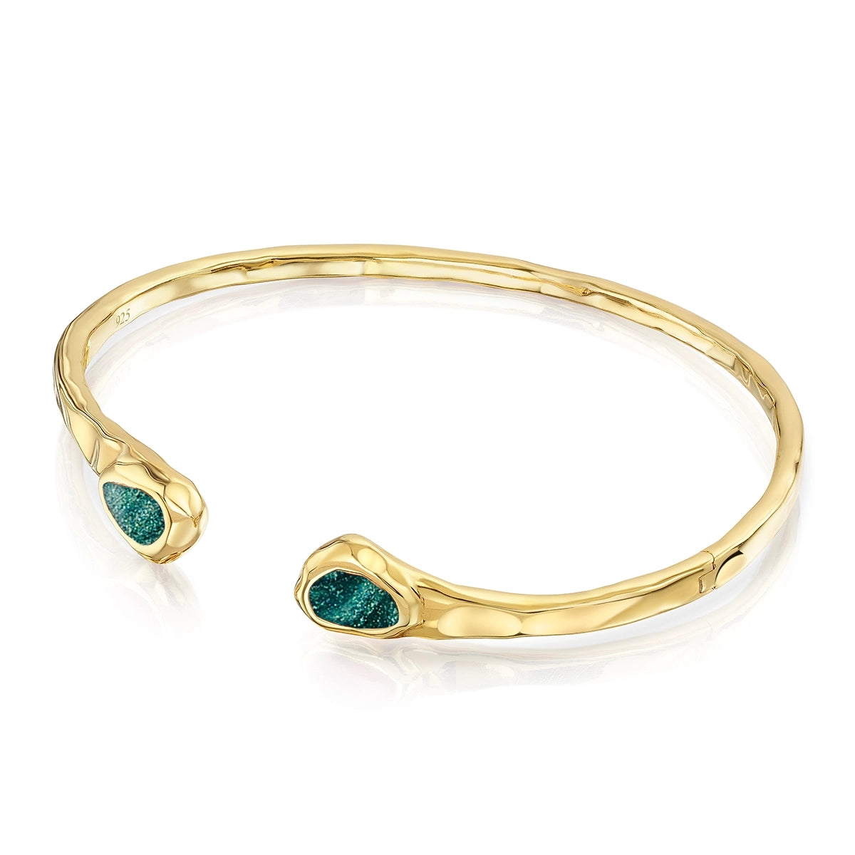 Crafted in 925 sterling silver with 18k gold plating, this creamtion ashes bangle offers a soft, natural aesthetic with its flowing, organic form and hammered-style finish.