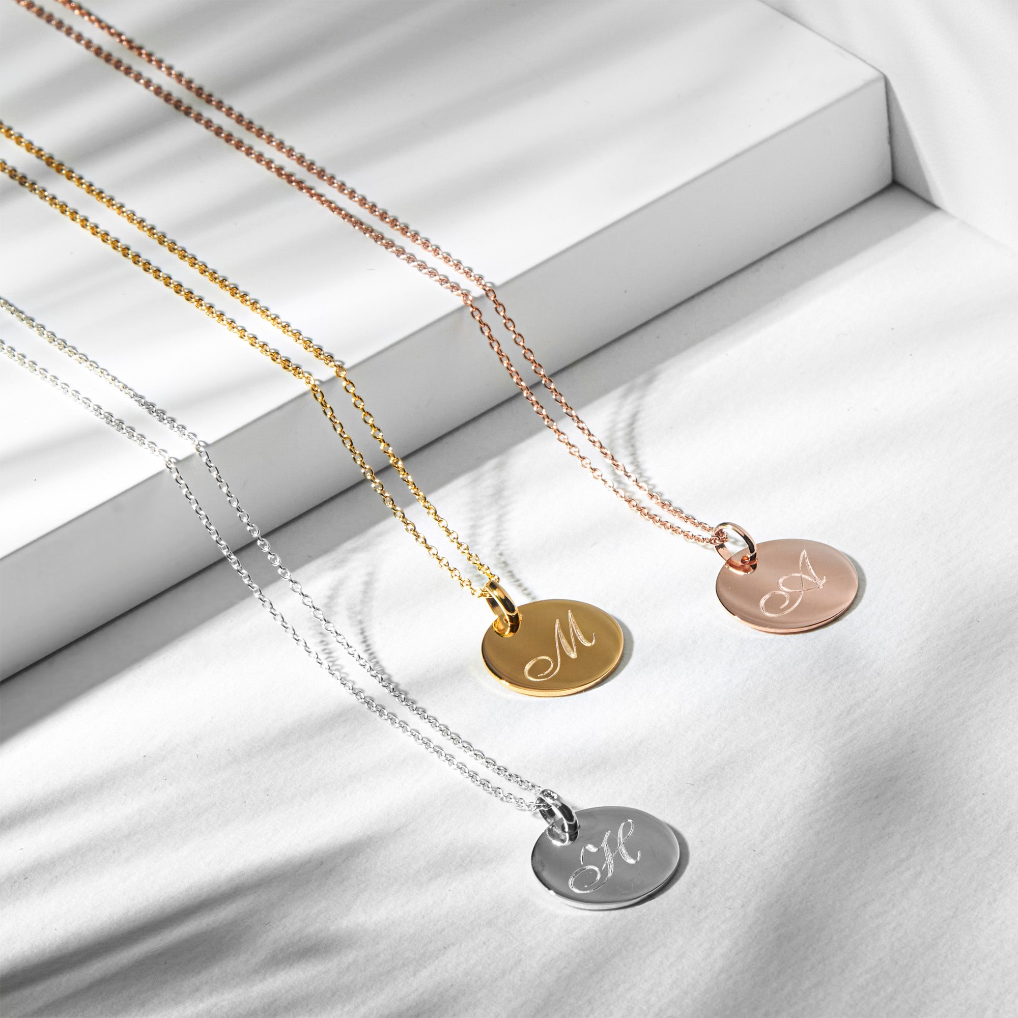 A simple and meaningful design, this necklace features a polished disc pendant engraved with an elegant script initial.