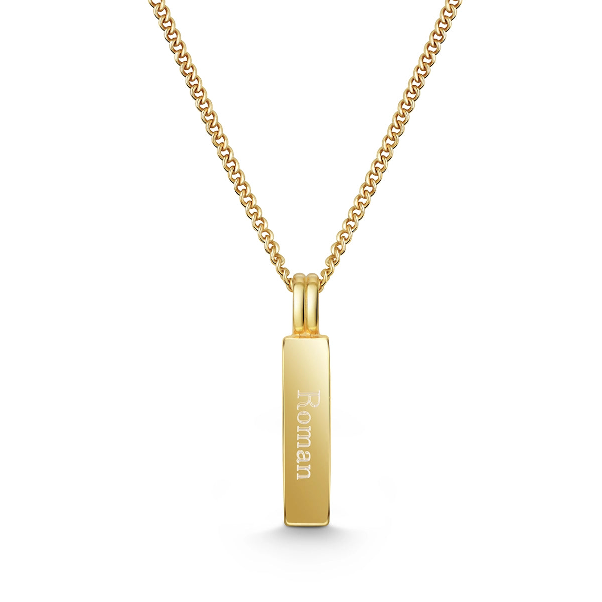 Designed with clean lines and a solid feel, this pendant necklace holds a hidden chamber for ashes inside its totem-shaped bar. Crafted from 925 sterling silver and plated in 18k gold, the pendant features a subtle screw opening at its base, revealing the secure inner compartment.