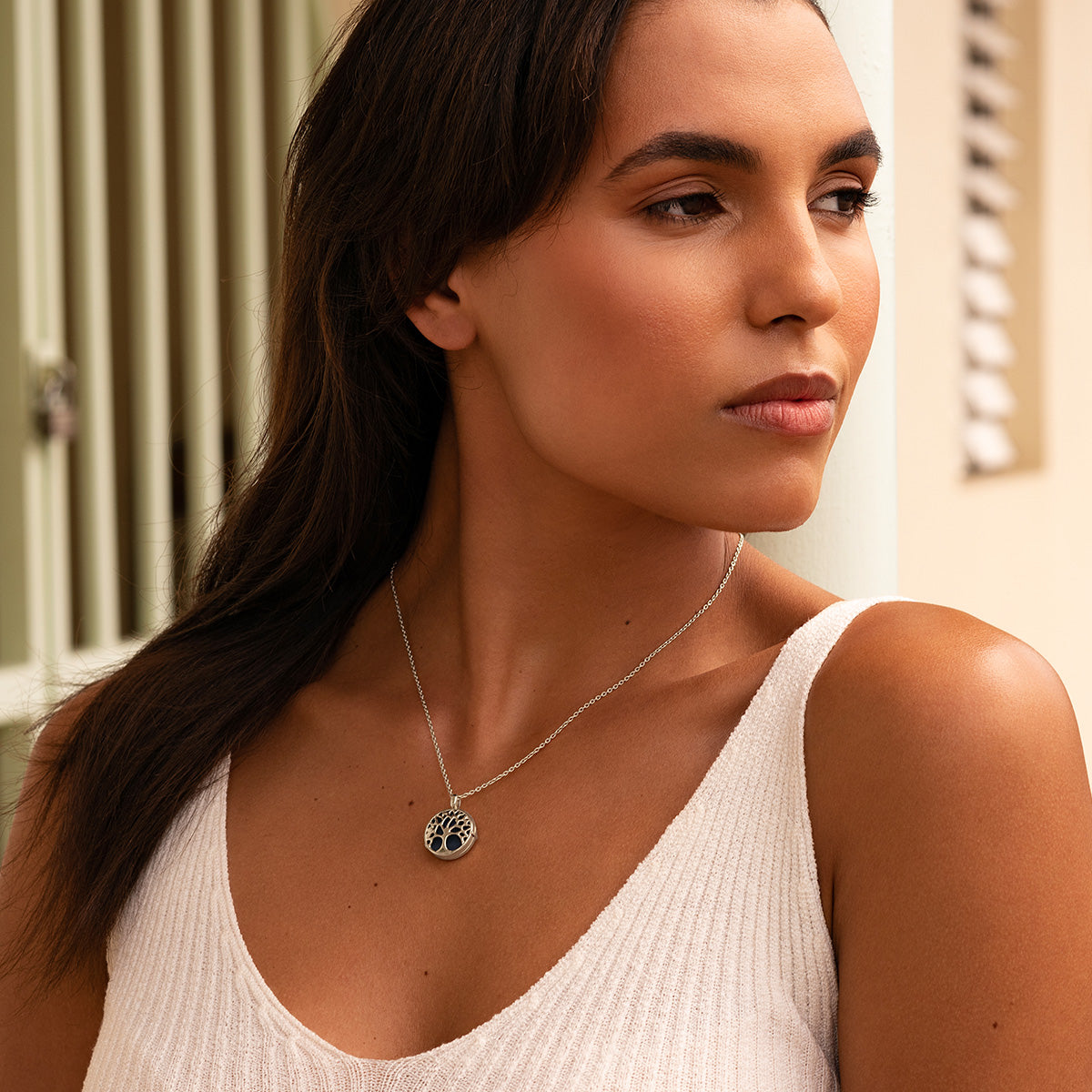 Im on holiday wearing this gorgeous Tree of Life locket , which has pictures of my daughters inside and engraved on the back. The chain is a perfect size for me . I highly recommend it