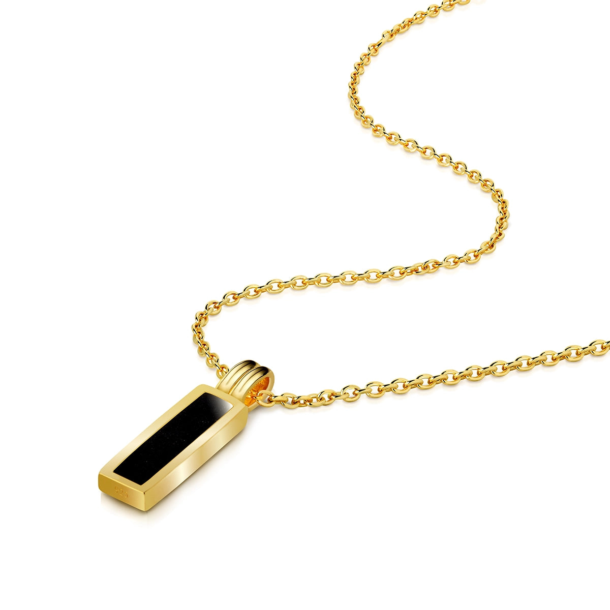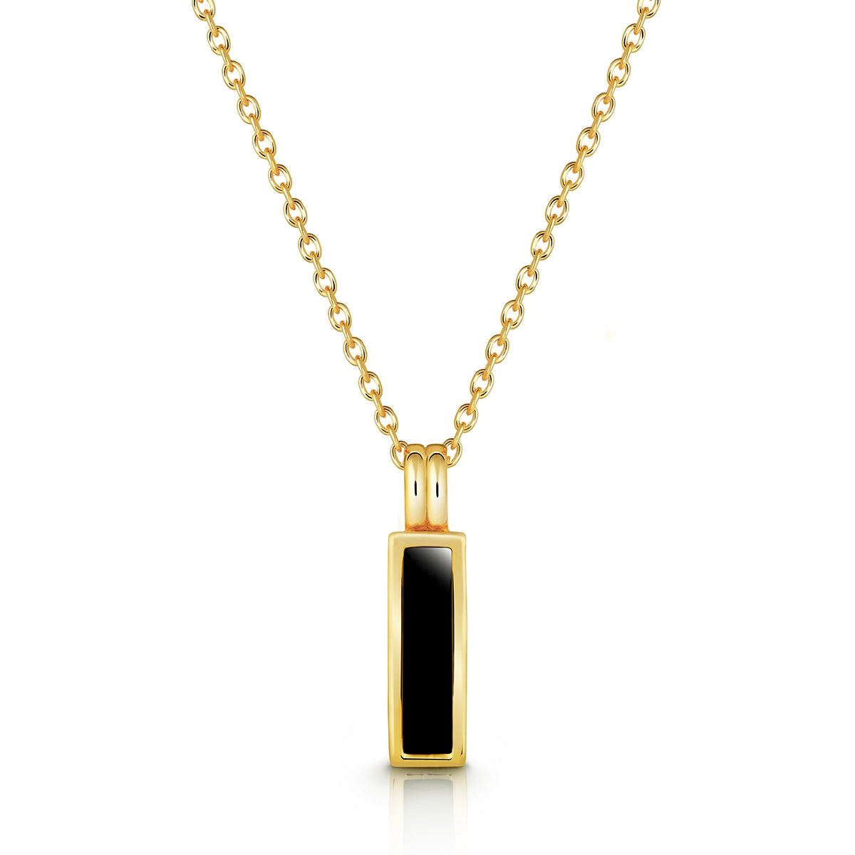 Crafted from 925 sterling silver and plated in 18k gold, this vertical tag necklace offers a modern and minimalist profile.