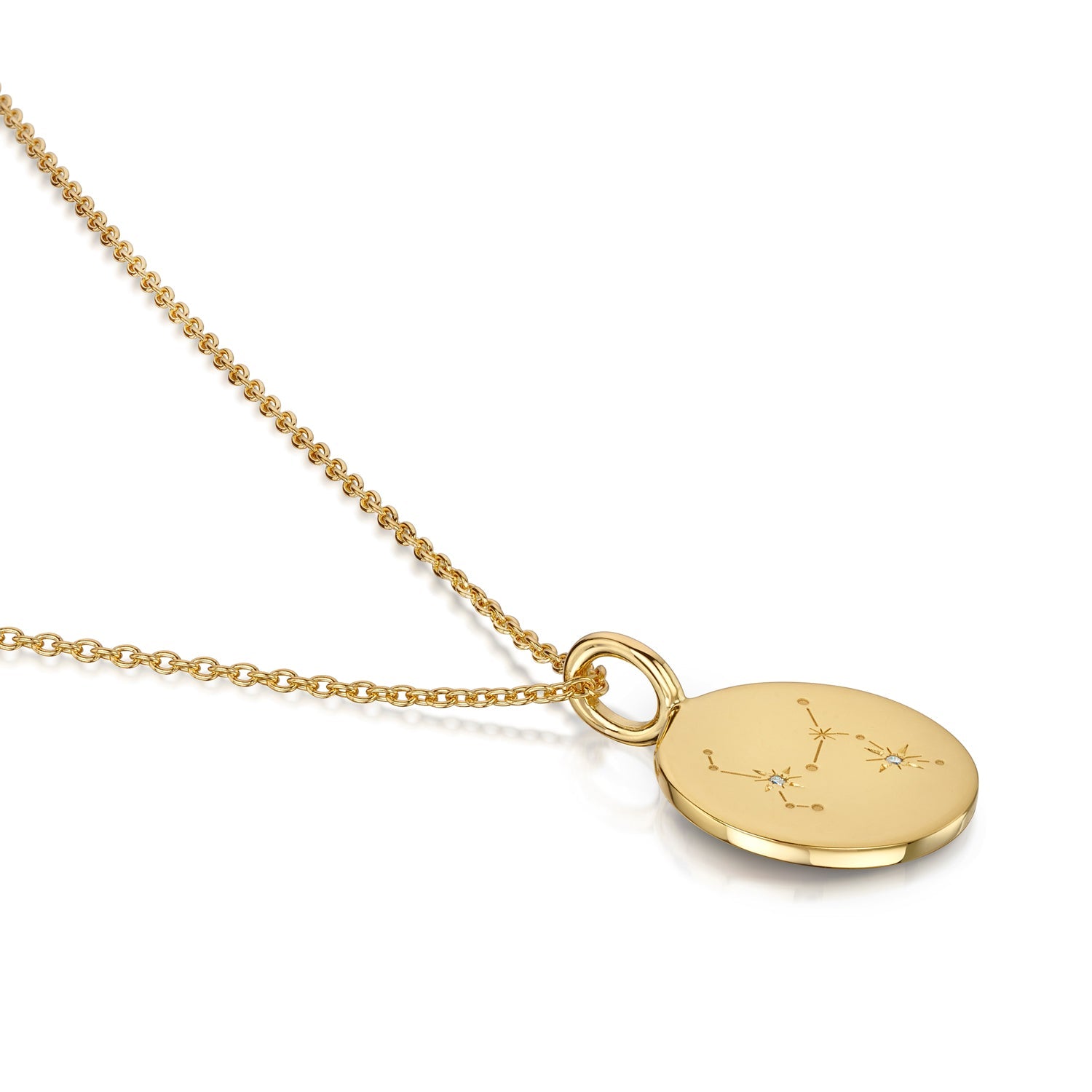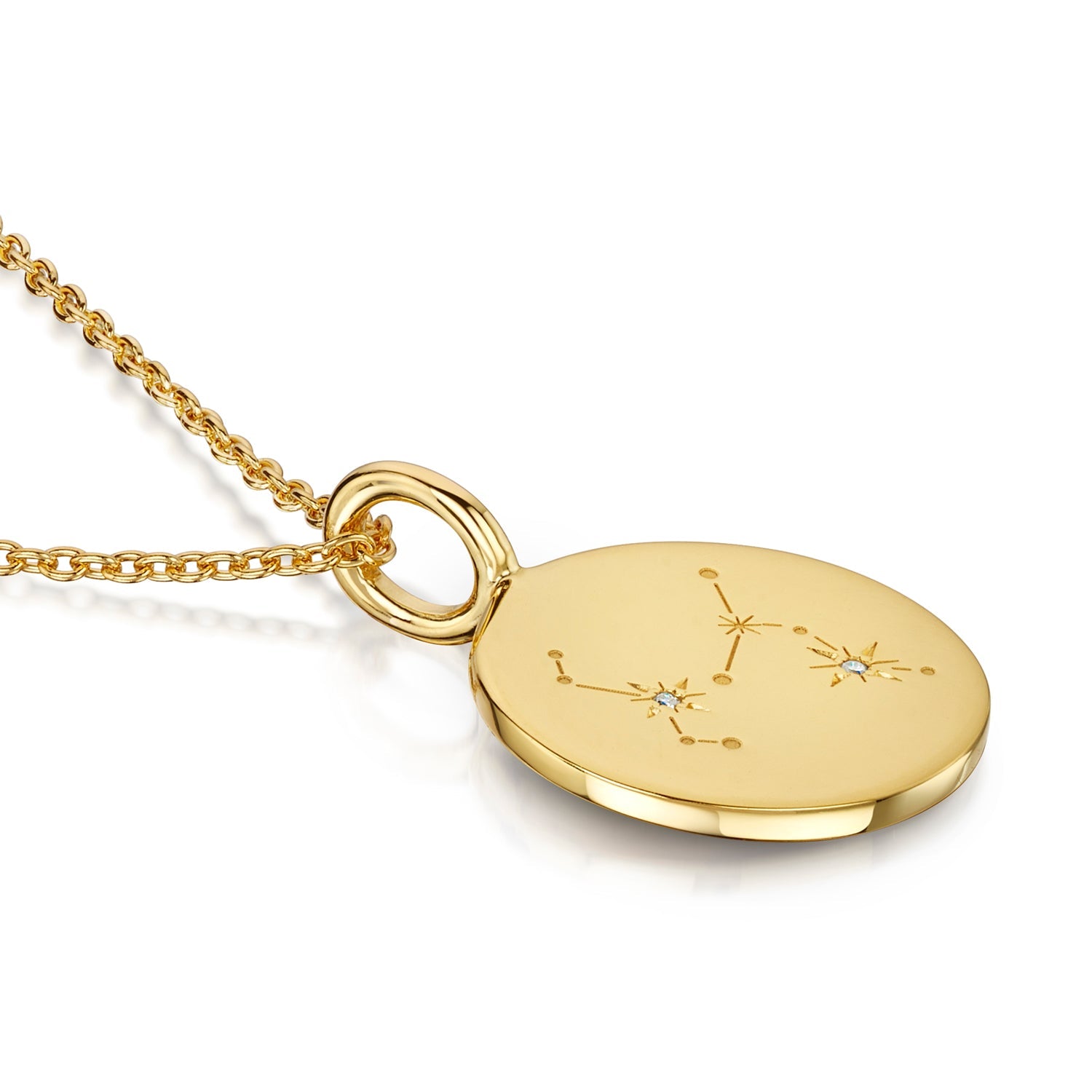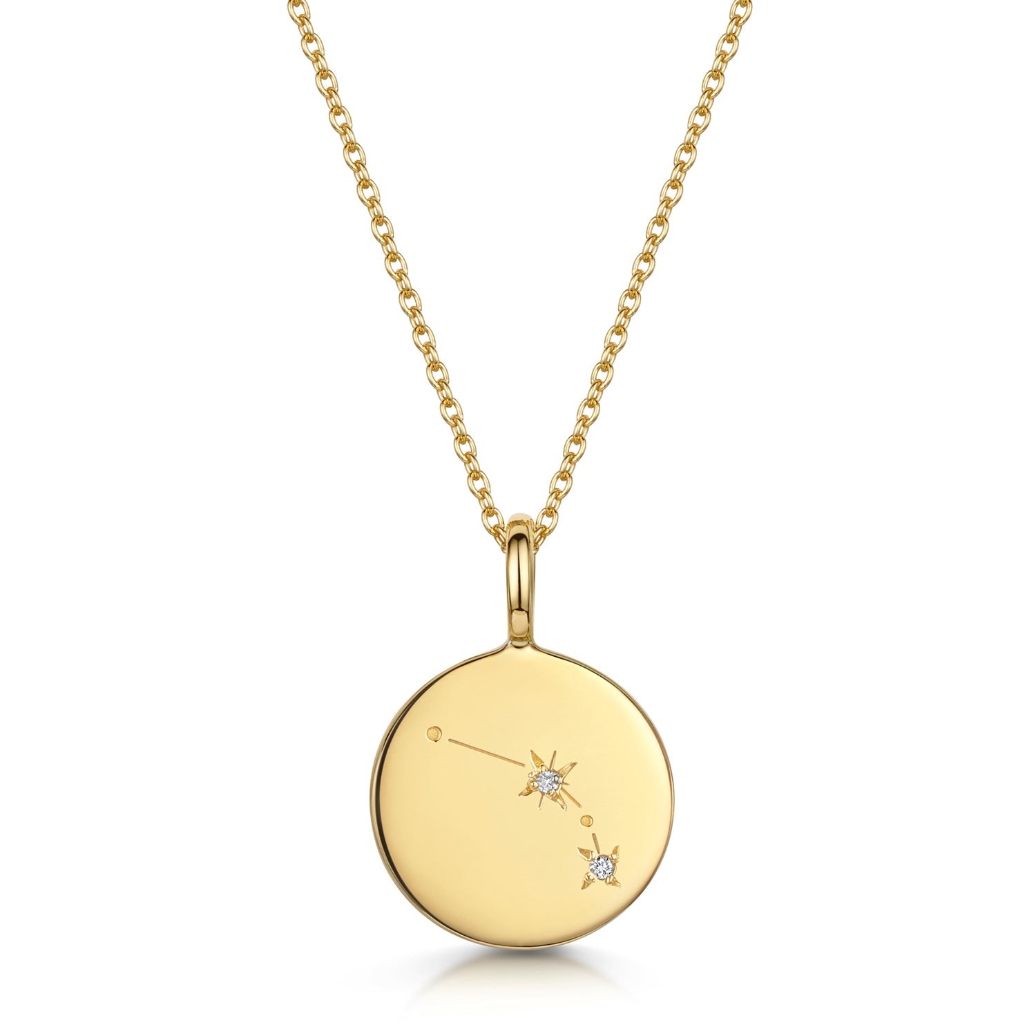 Crafted from 18k gold plated 925 sterling silver, the constellation is highlighted with small diamond accents, adding a soft sparkle while keeping the overall look clean and understated. The smooth surface of the pendant allows the celestial motif to stand out while maintaining a timeless, minimalist feel.